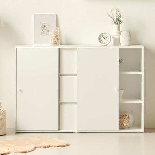 룸앤디 국내 제조 스르륵 슬라이딩 3단 일반형 수납장 방문설치, 웜화이트
